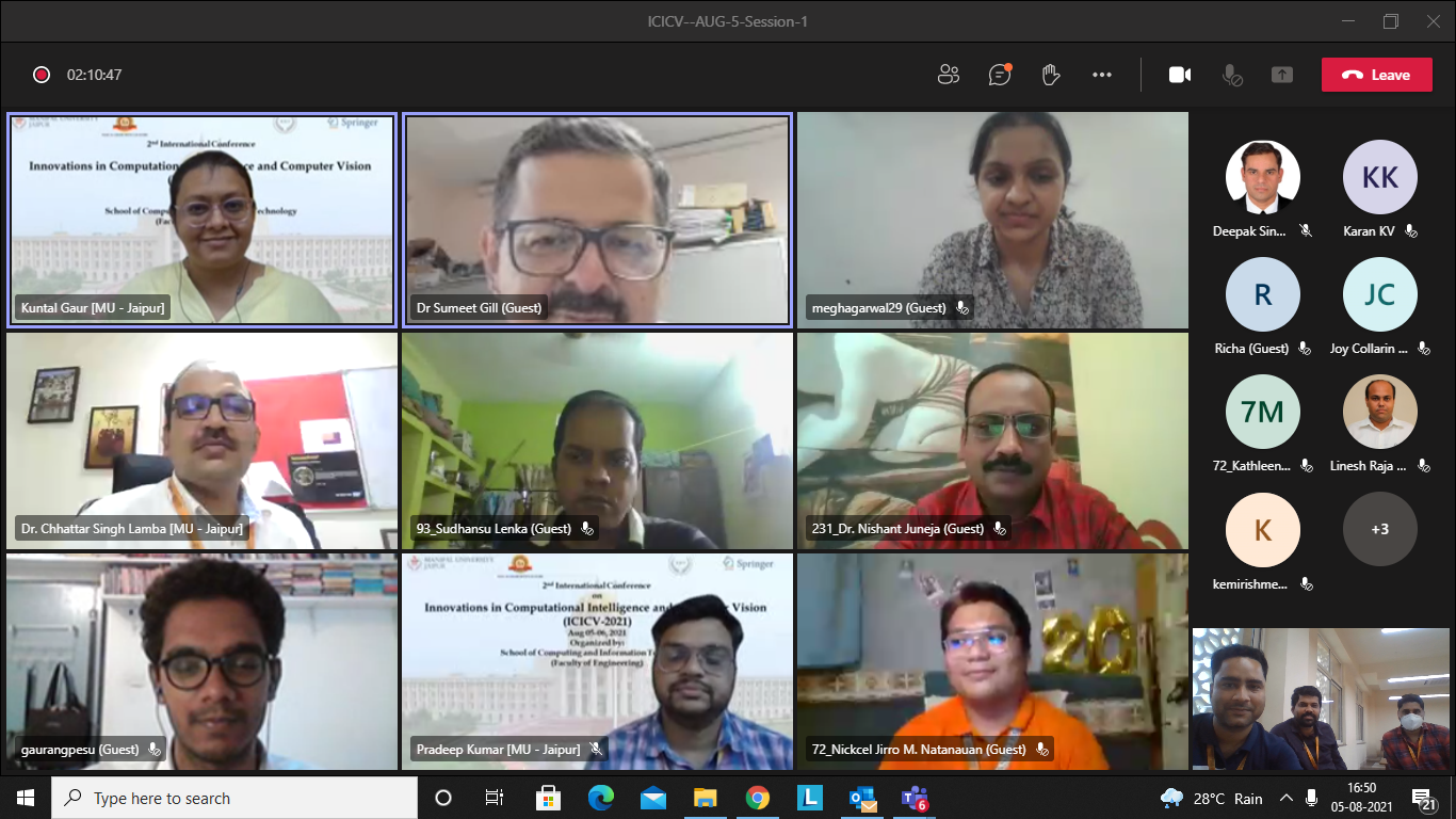 The Department of Computer and Communication Engineering, School of Computing and Information Technology, Manipal University Jaipur organized the Second International Conference on “Innovations in Computational Intelligence and Computer Vision” (ICICV-2021) on August 5-6, 2021.